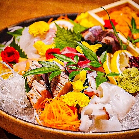 獲れたて鮮魚の自慢の刺盛をご提供♪日本酒との組み合わせが最高です。刺身五種盛り、七種盛りもご用意しております。