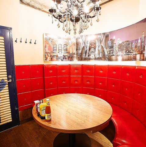 最大6人まで利用出来るU字型のゆったりとしたボックスタイプのソファー席は女子会に人気◎真っ赤なソファーやお洒落な店内はインスタ映えします!
