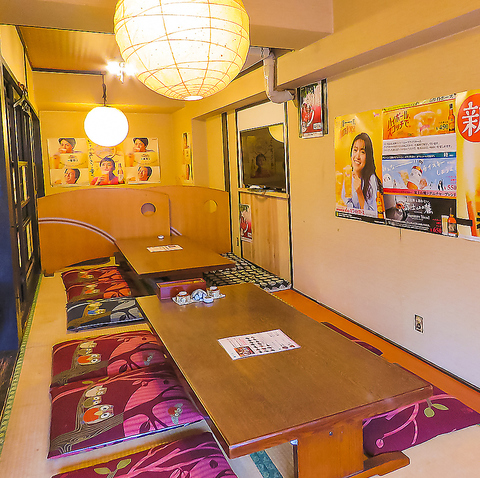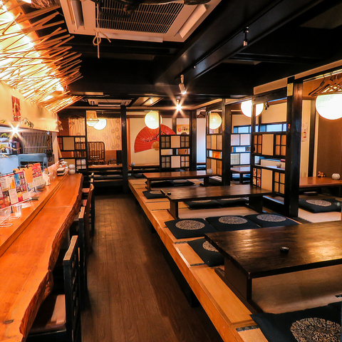 最大100名までOKの座敷席は、会社宴会などの大人数でのご利用にぴったり!足をのばしてゆったりくつろげる空間で、宴会が盛り上がること間違いなし。飲み放題付きの宴会コースも多数ご用意しているので、幹事さんも安心◎人数に合わせたレイアウト調整も可能です。完全個室もご用意しておりますのでお問合せ下さい。
