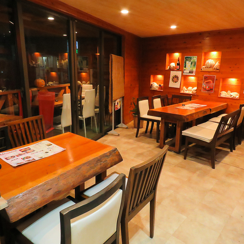【テーブル】木の温もりを感じるテーブル席は明るくアットホームな雰囲気。気の合う仲間との飲み会や会社帰りの一杯、ご家族でのお食事にもぴったりです。照明はやわらかく、ゆったりとした時間が流れる心地よい空間。人数に合わせたお席のご案内も可能なので、少人数の飲み会からグループ利用まで幅広くご利用いただけます
