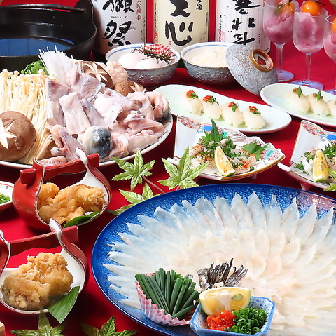 贅沢な河豚づくしのコース!ご家族ご親戚での慶事・法事や、ご宴会にも最適。お手頃価格で本格的な河豚を楽しめます。
