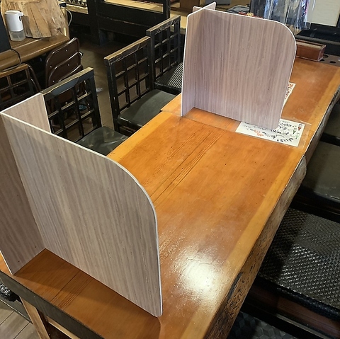 テーブル席には可動式の仕切り板を設置。安心してご利用ください。