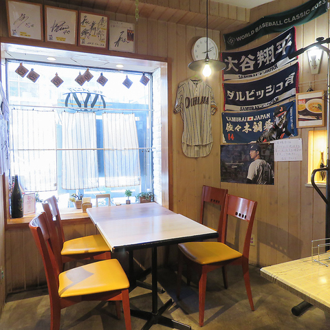 店主が野球好きでサインやユニフォームが展示されています!店内にあるテレビでシーズン中は見ながら飲食も!