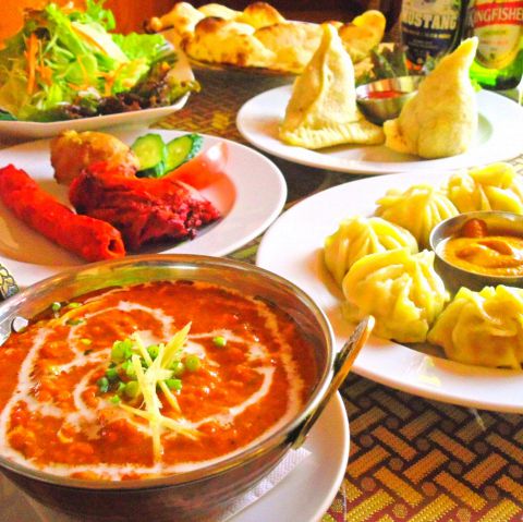 カレーは好きなものを何品でも、ナン、ライスも自由に選べる。120分飲み放題つき。※写真はイメージです。