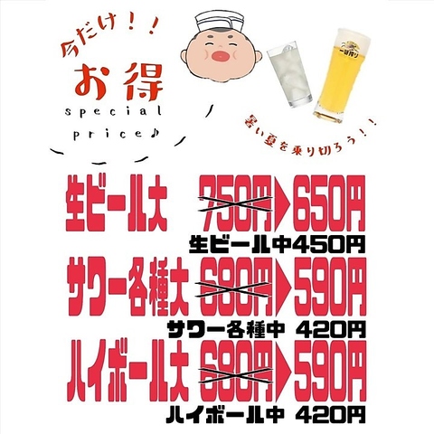 | ハイボール | ハイボール/ジンジャーハイボール/コーラハイボール |
