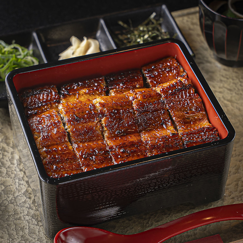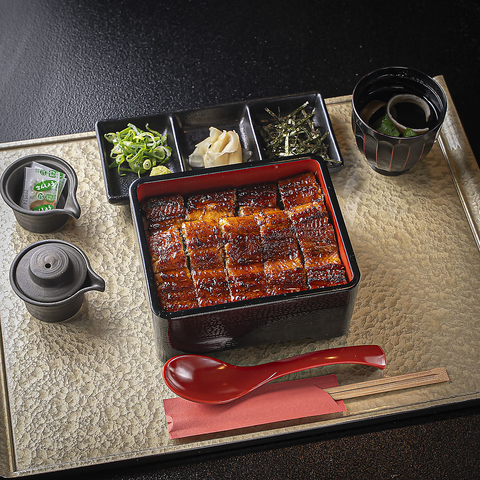 上質な鰻をまるまる一本分(「並」は半身)使用した、贅沢な「ひつまぶし」です。まずはそのままうな重として、次に薬味四種を添えて、そして最後は湯桶でご提供する特製出汁をかけて出汁茶漬けとして、三通りの味わいをご堪能いただけます。一杯で何度でも愉しめる、飽きのこない極上の逸品です。