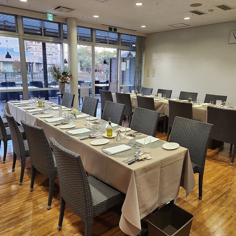 | テラス席 | 1名様×14 | 甲突川沿いに位置するテラス席は、優しい風が心地よく吹き抜ける〈マルコポーロ〉の人気のお席となっております。甲突川を眺めながら、絶品イタリアンの数々をご堪能いただけます。 |