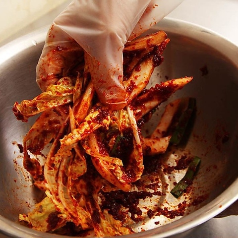 【小松菜キムチ】本場仕込みの技や技術を熟知した上で、日本の方向けにしておりおますので、辛い物が苦手な方にも優しく、美味しくお召し上がり頂けます。