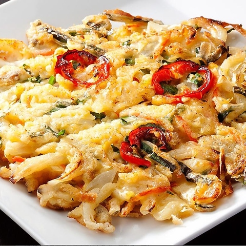 外はカリッと中はふんわり、ちぢみ屋特製ちぢみ。看板メニューのチヂミの中でも一番人気なのがコレ。サイズが大きいので3名~4名様でも十分にお楽しみ頂けます。また、具材をたくさん使用しいるので男性の方でも満足いただけると思います。