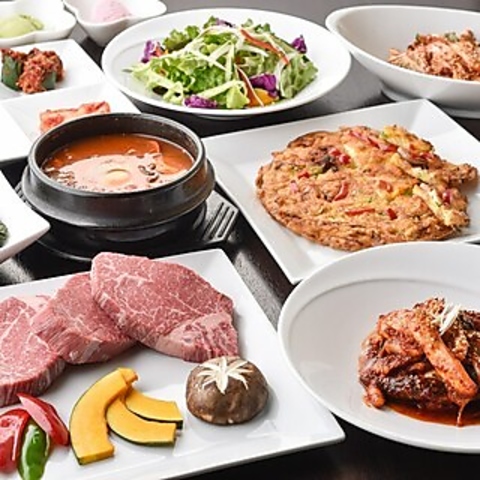 全9品のちぢみ屋の人気メニューと特上黒毛和牛をお楽しみ頂けるコースです。前菜をはじめ、和牛スジ煮込みや人気No.1の海鮮チヂミが堪能でき、メインは和牛特上フィレとなっている高級コースです。デザートもお楽しみいただけるのでおすすめです◎