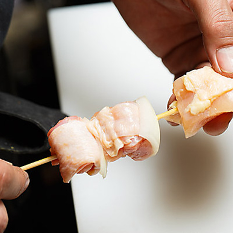 焼き鳥の美味しさは、『串打ち』で決まるといっても過言ではありません。旨味・食感を存分に引き出すためには、その日仕入れた鶏の状態を見極めることが重要。そして、美味しい焼き鳥は、見た目も美しいのが特徴です。当店の串も、狙った通りの火入れをするための串打ちで仕上げております。