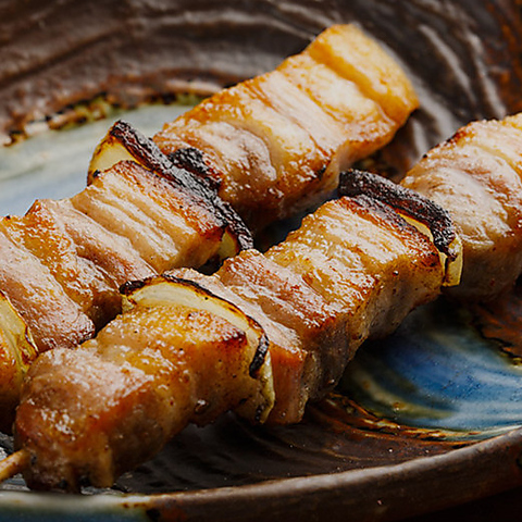 焼き鳥以外にも、お野菜などを使った串焼きをご用意しています。博多ネギ巻きやレタス巻き、アスパラ巻きなど定番人気野菜巻きに加えて、ぎんなんなど旬の食材を取り入れて作る創作串は、特に女性に人気です。 一風変わった串のラインナップで焼き鳥以外も楽しめます。
