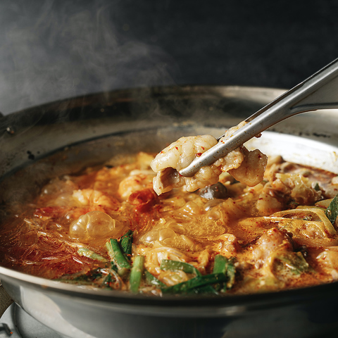 話題のナッコプセ鍋がプチマンに新登場!手長ダコ、ホルモン、えびが入った旨辛鍋おすすめです。