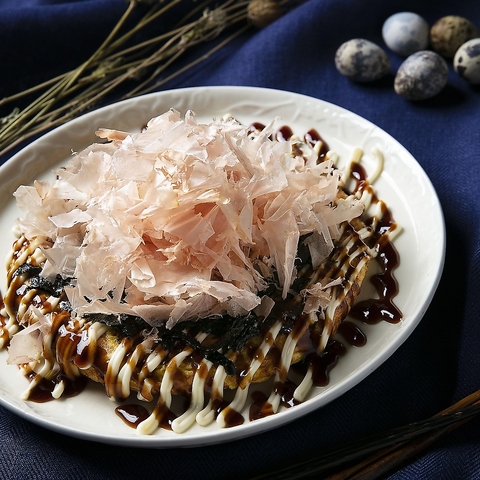 鰻入りのチーズオムレツをお好み焼風に仕上げました。