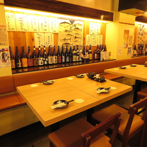 【テーブル席】大人数で賑やかに楽しめる居酒屋では、新鮮な海鮮料理と豊富な日本酒を取り揃えています。活気ある雰囲気の中、仲間とともに旬の刺身や焼き物を味わいながら、様々な日本酒を楽しむことができます。広々とした席で、思い出に残る楽しいひとときを過ごせる場所です。