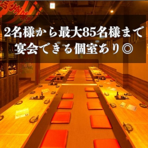 少人数(2名様~)でご利用いただける個室から最大85名様まで収容可能な座敷まで、色々なお部屋を取り揃えてお待ちしております♪プロジェクターも完備だから主役がいる宴会にぴったり◆新宿 居酒屋 もつ鍋 焼き鳥 飲み放題 忘年会◆