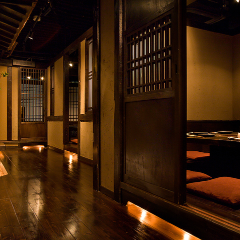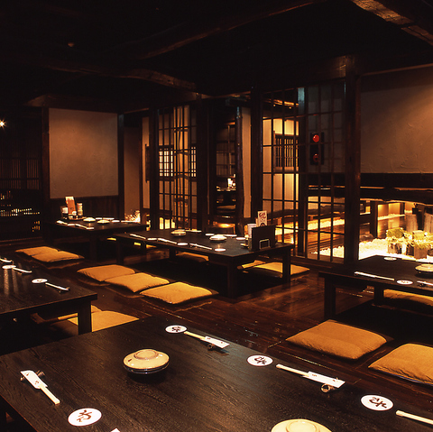 掘りごたつタイプのお席は足をおろしてゆったりおくつろぎ頂けます♪様々な個室をご用意しておりますので、人数に合わせたお席にご案内いたします!会社飲み会や2次会、お友達同士、ご家族でのご利用にもおすすめ◎古民家風の造りはまどろみの時間を演出。自慢の創作料理で最高の時間をお過ごしください♪
