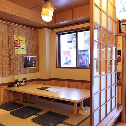 お座敷は6名様でゆったりのお席が4卓ございます。飲み放題付きの宴会コースや食べ放題もございますので詳細はコースページでご確認ください。