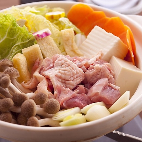 鶏と野菜でとってもヘルシー《基本セット》大山鶏(もも肉、むね肉、せせり)野菜(キャベツ、ニラ、もやし、にんにく、キムチ)スープ(12時間煮込んだ熟成鶏ガラスープと特性ダレ)【人気!トッピング】美肌豚650円(税込)/大山鶏MIX600円(税込)/そば300円(税込)/野菜盛り合わせ500円(税込)/うどん300円(税込)/おじやセット400円(税込)