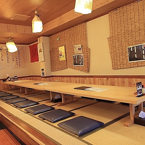 お座敷は6名様でゆったりのお席が4卓ございます。飲み放題付きの宴会コースや食べ放題もございますので詳細はコースページでご確認ください。