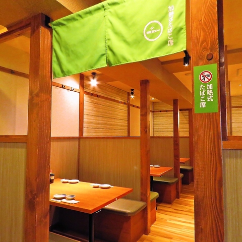 テーブル席、電子タバコ可能席、個室など様々なお席をご用意してお待ちしております。デートや少人数での飲み会から、新年会などの各種会社宴会、同窓会、二次会など大人数での団体利用まで幅広い用途にご利用いただけます。