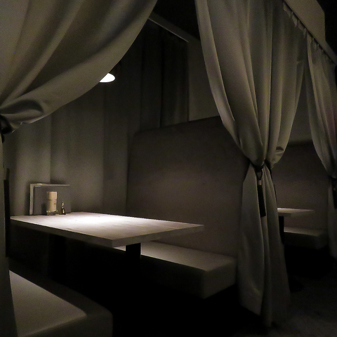 ダウンライトが心地よいゆったりとくつろげるテーブル席もございます。カーテンで仕切ればプライベート感も◎記念日や誕生日等の特別な日にも最適なお席です。