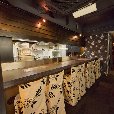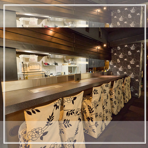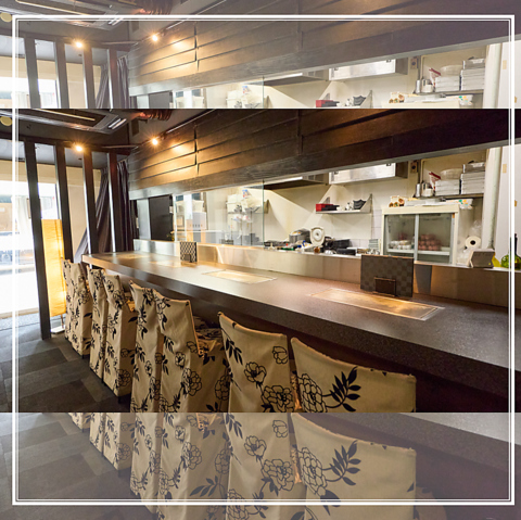 2人組にピッタリなカウンター席!!目の前からキッチン側の調理工程を見て楽しみ・食べてお楽しみください!