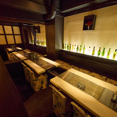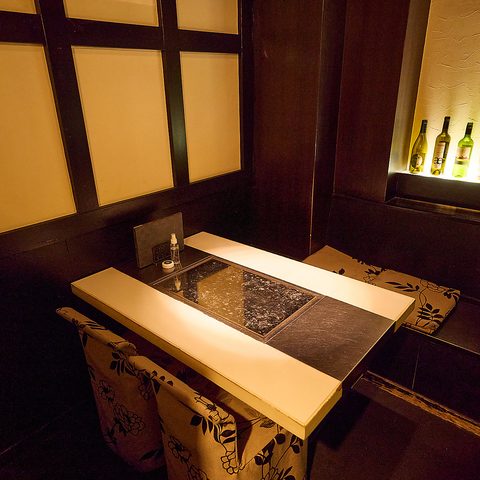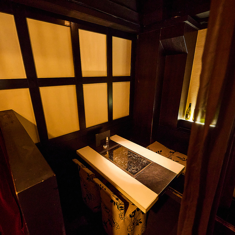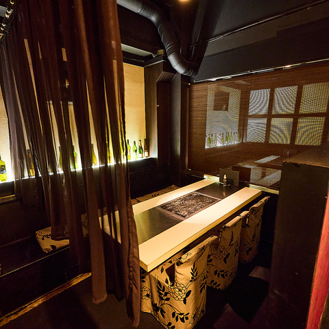 2様からご利用可能なカーテン付きテーブル席★最大40名様までご利用可能!カーテンで仕切られたプライベート感ある空間は大人の雰囲気漂う店内です★デート/女子会/接待に◎和モダンで落ち着きのある店内をご堪能★京橋周辺での鉄板焼きはお任せ下さい!