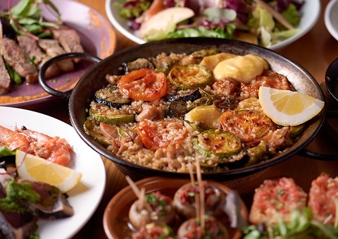 タパスやアヒージョ、パエリアなど、スペイン料理を囲んで会話もお酒も自然と弾みます!