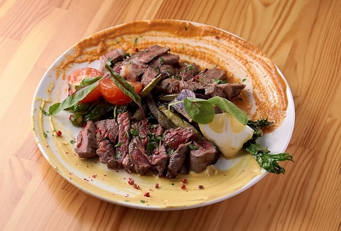 口どけのよいイベリコ豚と、赤身の旨みが凝縮した牛ランプを絶妙な焼き加減で。シンプルに、そして上質に味わう肉の競演。福島焼き野菜も旨し!!