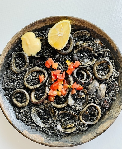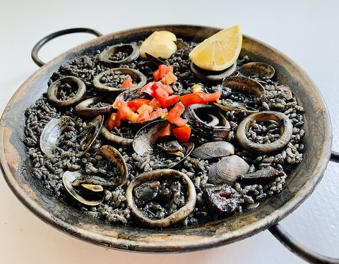 真っ黒な見た目にびっくり?でも一口で虜になる、スペインでも人気の逸品。イカ墨の深いコクと旨味がお米にしっかり染み込み、まさに“海のリゾット”。イカやアサリなどの魚介とともに、濃厚でまろやかな味わいをお楽しみください。食べ終わる頃には、みんな笑顔で真っ黒です。