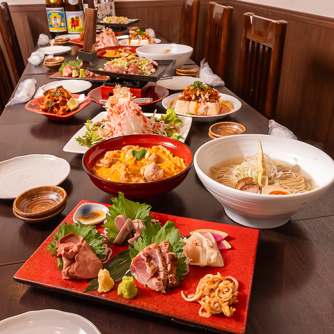 《鳥刺し》《鶏ら~めん》など、お酒のお供から〆まで勢ぞろい