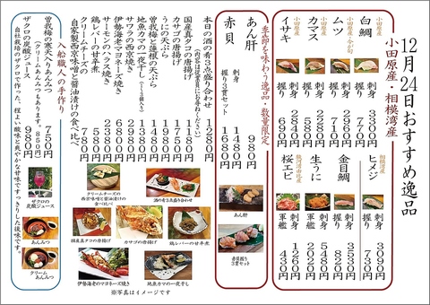 獲れたてのお魚や、メニューにはない逸品がのっております。ご覧ください。