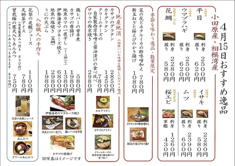 獲れたてのお魚や、メニューにはない逸品がのっております。ご覧ください。