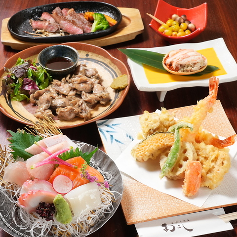 90分または120分の飲み放題付き♪お造り三種やボリューム満点の揚げ物、煮物など全8品の「和よしコース」!
