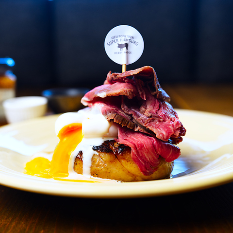 ポーチドエッグ&ローストビーフ、ふわふわのオムレツ、じっくり煮込んだタンシチューなど、ご褒美が乗った見た目も楽しいハンバーグがいっぱい。特別な1日をプロデュース。