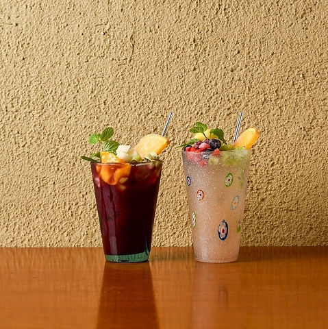 | 【ノンアルコールカクテル・ソフトドリンク】 | イタリアンレモネード/キウイシトラス/桃りんご/イチゴオーレ/レモンスカッシュ/ウーロン茶/緑茶/オレンジ/りんご/アセロラ/コーラ/ジンジャーエール/炭酸水/グレープフルーツ |