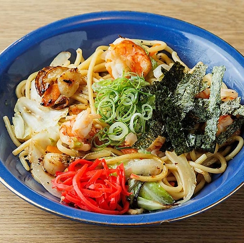 海鮮のぷりぷり食感と、塩だれのコクが麺にしっかり絡んだ、うまみたっぷりの焼きそばです。