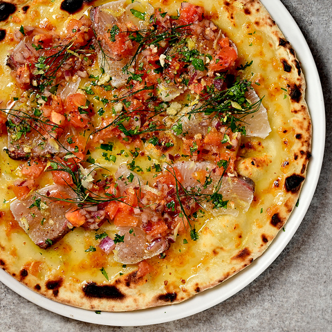 【生地】小麦の種類や配合にこだわり、サクサク感と軽さを重視した小麦の香りを感じる生地です。【トマトソース】トマト本来の旨みを引き出し、酸味のバランスがとれたソースに仕上げました。【石窯】スピード加熱で、表面はカリッと生地はふんわりと仕上がります。