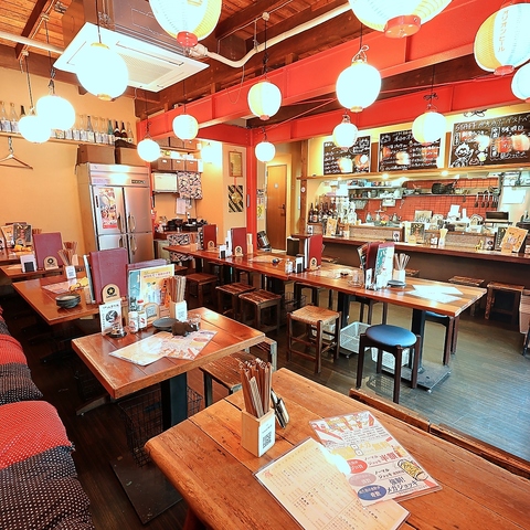 沖縄食堂ハイサイは、沖縄の雰囲気が感じられる温かい空間です。壁には色鮮やかなポスターが飾られ、沖縄の文化を演出。木の温もりあるテーブルと椅子が並び、カジュアルでリラックスした雰囲気を醸し出しています。提灯の灯りが照らす中、友人や家族と共に沖縄料理を楽しむのにぴったりな場所です。