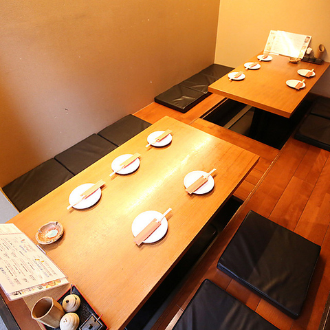 おしゃれな和のくつろぎ空間を提供し、6~12名様までご利用可能な個室をご用意。ゆったりとした店内で楽しむことができます。人気の「掘りごたつ席個室」は、足が疲れにくく、リラックスしてお食事をお楽しみいただけるスペースです。また他にも個室席がございますので、個室の詳細は当店にお問い合わせください。