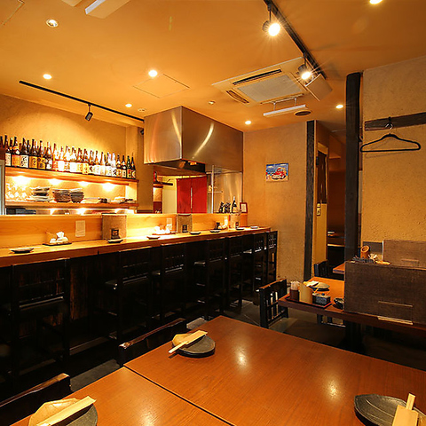 カウンター席は8席ご用意しており、仕事帰りのサク飲みに最適なスペースです。落ち着いた雰囲気の中で、ゆったりとした時間をお過ごしいただけます。一人でのリラックスタイムや、友人とのカジュアルな集まりにもぴったりな空間です。