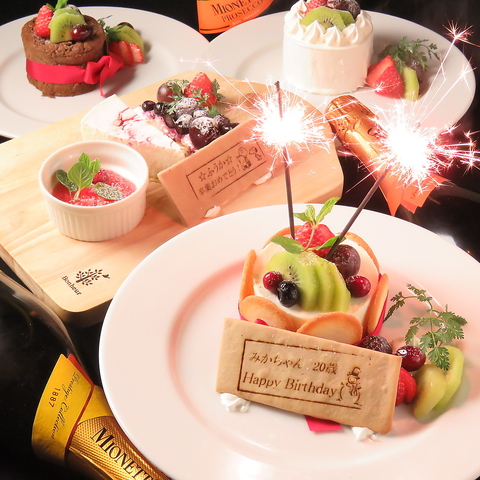 【メッセージ入りホールケーキ】デザート付きコースは無料でホールケーキへの変更が可能です。