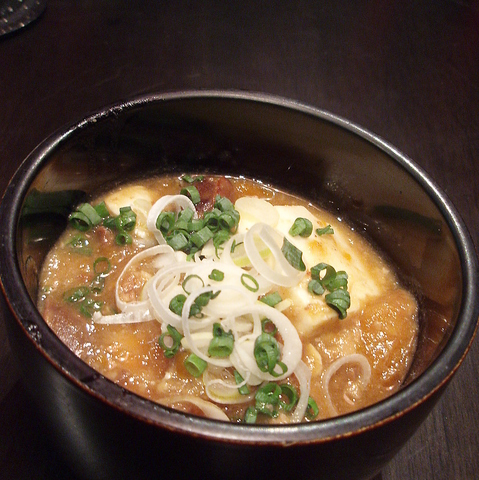 豆板醤でピリピリ(500円) 汁を美味しく!がモットーの鳥のもつ煮です.