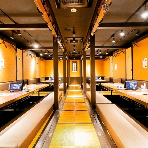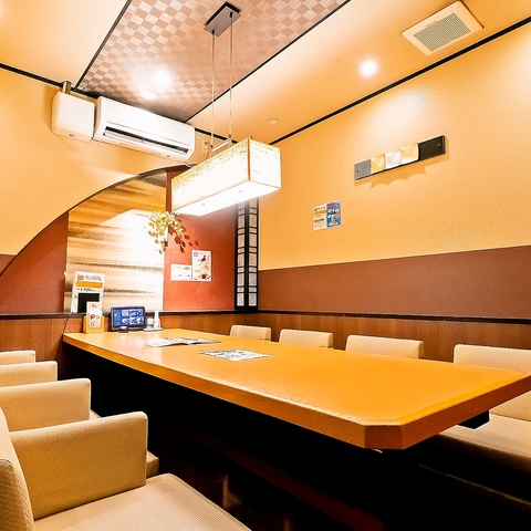 大人数での宴会に最適な居酒屋として、広々としたテーブル席をご用意。飲み放題付きコースも充実しており、個室の利用も可能です。設備や環境が整っているので、幹事様が安心してご予約いただけます。
