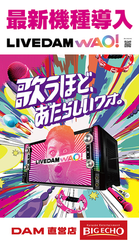 【カラオケ 小田原】 最新AI技術と業界最高クラスの音響が融合した「ライブダムワオ」は、まさに"歌う感動"を超えるエンターテインメント。臨場感あるライブ映像、アーティスト本人映像、リアルタイム採点で、あなたの歌がもっと輝く。全国採点GPや精密採点Aiで、自分の実力を確かめよう!「ワオ!」と驚く新体験が、ここにある。