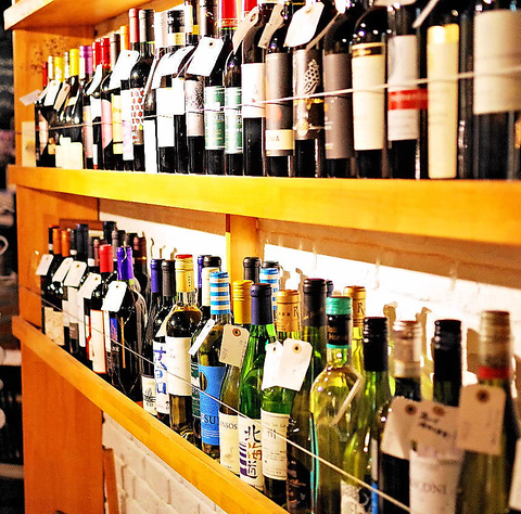 ワインラバーにはたまらないワインの取り揃え〇お隣の酒屋さんで購入したワインを持ち込んでもOK♪