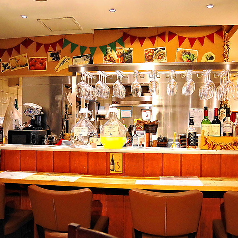 臨場感あふれるオープンキッチンの目の前にあるカウンター席は、お一人様やデート、親しいご友人とのお食事などに最適です。目の前でシェフが腕を振るう様子を眺めながら、ゆったりと食事をお楽しみいただけます♪お料理やワインについて、気軽にスタッフに尋ねてみるのもおすすめです◎
