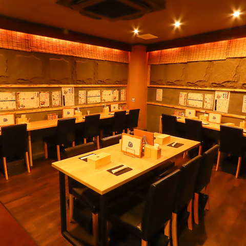 落ち着いた空間のカウンター席をご用意しています。ゆったりとした雰囲気の中で、一人でも気軽にお楽しみいただけるのが魅力です。友達との会話や一人でのリラックスタイムにも最適です。静かで落ち着いた環境の中、美味しい料理とともに心地よいひとときをお楽しみください。