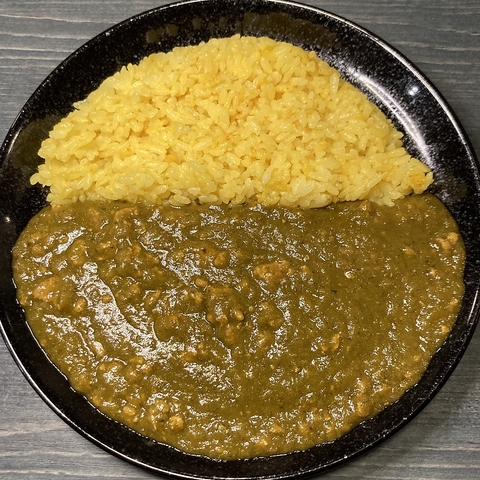 カレーに不足がちな野菜が少しでも多く摂取できるよう季節により菜の花orほうれん草or小松菜などをたっぷりと使用(ほかの青菜の時もありますヨ)チキンミンチと相まってとっても美味しくなりましたカレーです。ハーフ&ハーフ500円(税込)